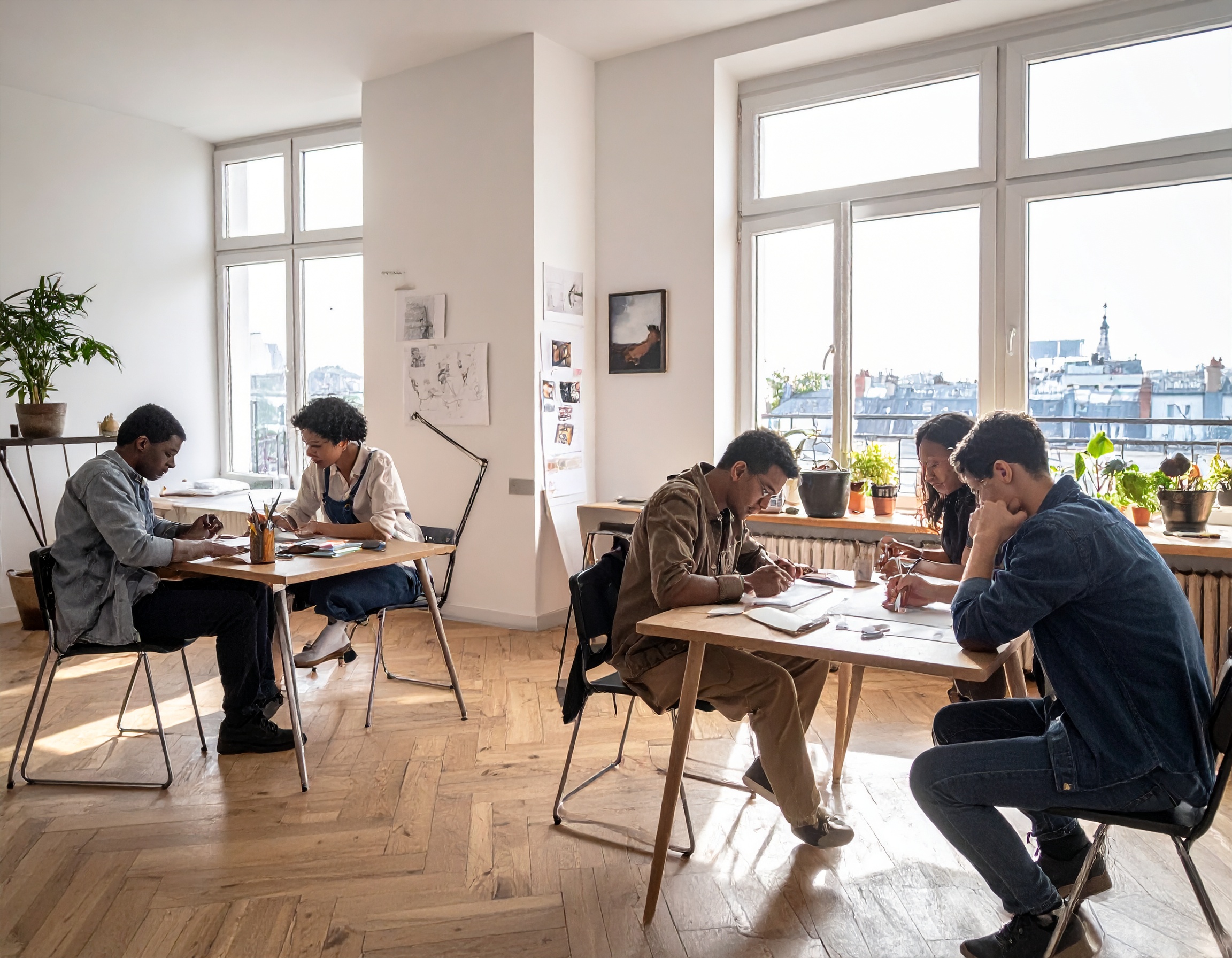 Explorez les fondements de la création visuelle à travers des ateliers inspirés par les maîtres parisiens, avec des modules en dessin, peinture et design graphique. Nos cours de lycée posent les bases, tandis que les niveaux supérieurs intègrent des outils numériques avancés pour une maîtrise professionnelle.